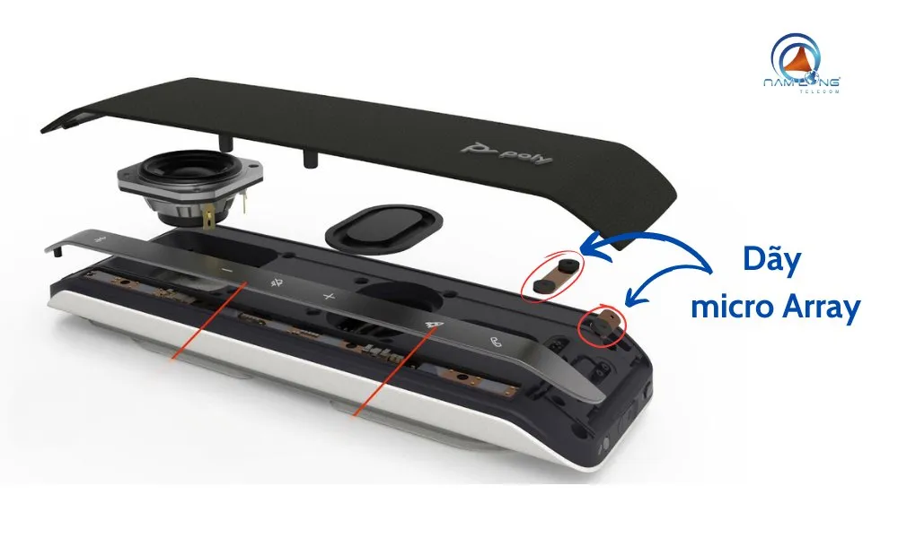 - Các sản phẩm cao cấp như Poly Sync 60 có thể tích hợp đến 6 micro array, giúp tăng khả năng thu âm trong phòng họp lớn.