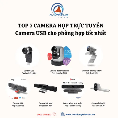 - Poly Studio E70: Camera kép AI, tự động tracking, dành cho phòng họp lớn.