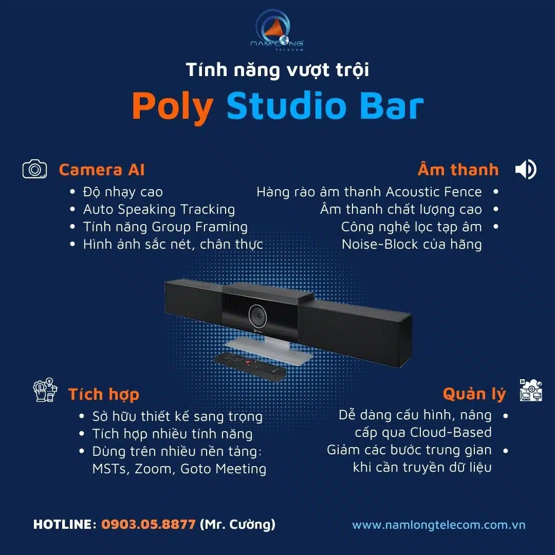 Chỉ với mức đầu tư dưới 25 triệu đồng, Poly Studio Bar mang đến giải pháp họp online chuẩn doanh nghiệp với: